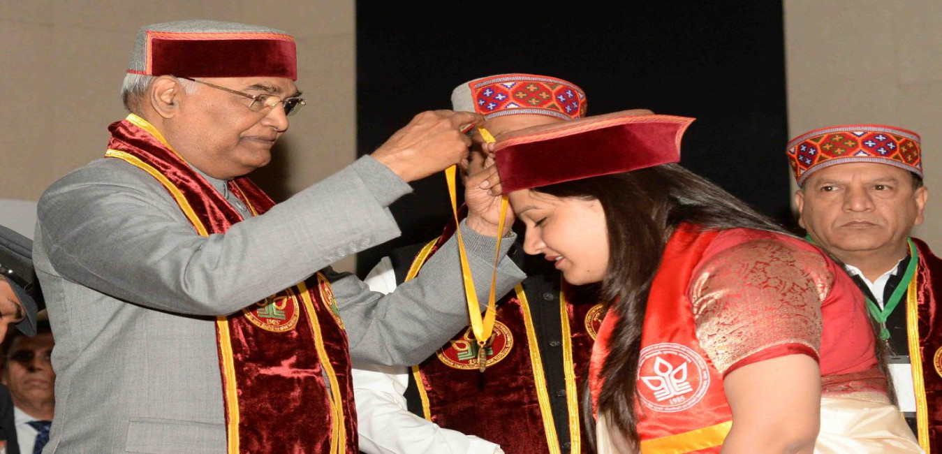 The President of India, Shri Ram Nath Kovind addressing the 9th Convocation of the Dr. Y. S. Parmar University of Horticulture and Forestry & presenting degree and gold medal to the students, at Solan, in Himachal Pradesh on May 21, 2018.