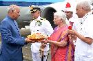 The President of India, Shri Ram Nath Kovind being received by the Governor of Goa, Smt. Mridula Sinha and the Chief Minister of Goa, Shri Manohar Parrikar, at Dabolim airport, in Goa on July 07, 2018.