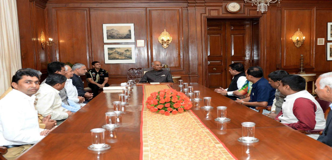The Speaker, Gujarat Legislative Assembly, Shri Rajendra Trivedi alongwith MLAs belongs to BJP and Congress meeting with the President of India, Shri Ram Nath Kovind, at Rashtrapati Bhavan on July 27, 2018.