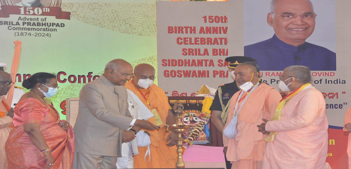 The President of India, Shri Ram Nath Kovind inaugurates the three-year-long celebrations of the 150th birth anniversary of Srimad Bhakti Siddhanta Saraswati Goswami Prabhupad, the founder of Gaudiya Math and Mission, in Puri, Odisha on February 20, 2022.