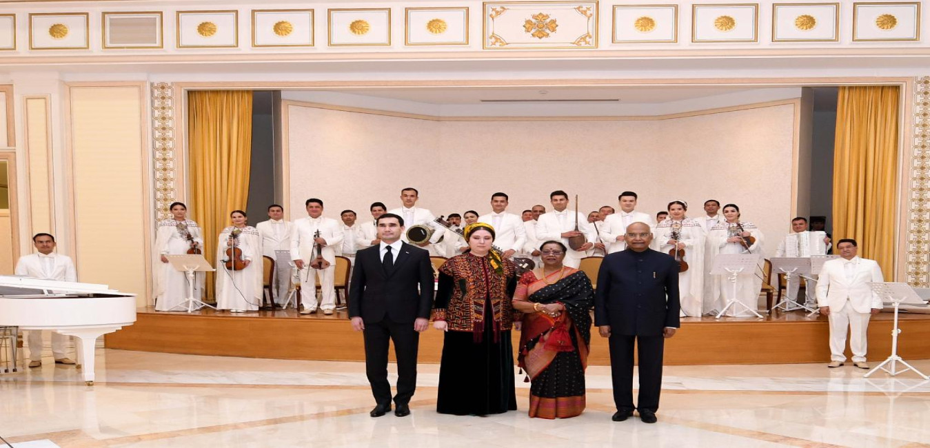 The President of India, Shri Ram Nath Kovind attended a banquet with musical evening hosted by the President of Turkmenistan, Mr. Serdar Berdimuhamedov, at Oguzhan Presidential Palace, in Ashgabat, Turkmenistan on April 02, 2022.