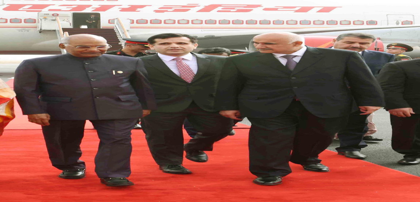 The President of India, Shri Ram Nath Kovind and First Lady, Smt. Savita Kovind being received by the Deputy Prime Minister of Tajikistan, H.E. Mr. Zokirzoda Mahmadtoir Zoir on their arrival, at Dushanbe International Airport, in Tajikistan on October 07, 2018.