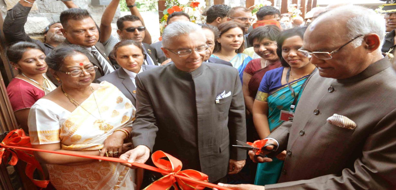 The President of India, Shri Ram Nath Kovind inaugurating the World Hindi Secretariat Building, launching World Hindi Secretariat s logo, an Early Digital Learning Programme and unveiling the foundation stones of Social Housing Project, at Mauritius on March 13, 2018.