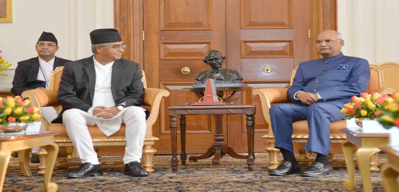 The Prime Minister of Nepal, Rt. Hon'ble Mr. Sher Bahadur Deuba calling on the President of India, Shri Ram Nath Kovind, at Rashtrapati Bhavan on August 24, 2017.