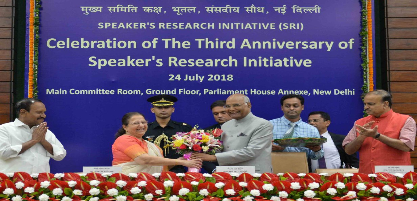 The President of India, Shri Ram Nath Kovind addressing the commemoration of the third anniversary of the Speaker s Research Initiative (SRI) of the Lok Sabha, in New Delhi on July 24, 2018.