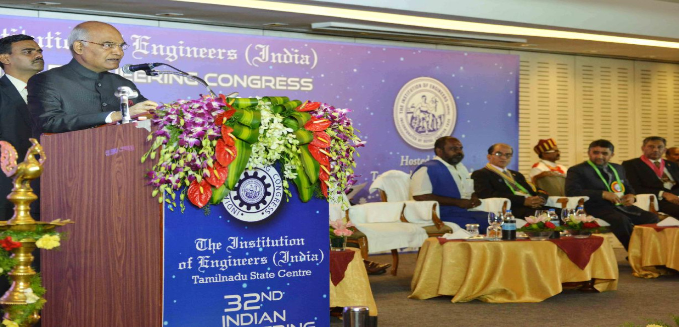 The President of India, Shri Ram Nath Kovind addressing at the valedictory function of the 32nd Indian Engineering Congress, organised by the Institution of Engineers (India), at Chennai, in Tamil Nadu on December 23, 2017.