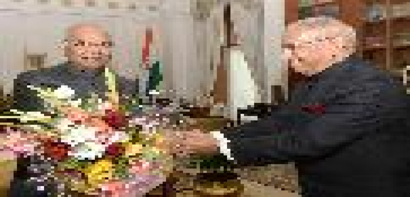 The President of India, Shri Ram Nath Kovind paying floral tributes at the bust of Mahatma Gandhi during the foundation stone laying ceremony for "Naya-Gram" Project of High Court of Allahabad, in Uttar Pradesh on December 16, 2017.