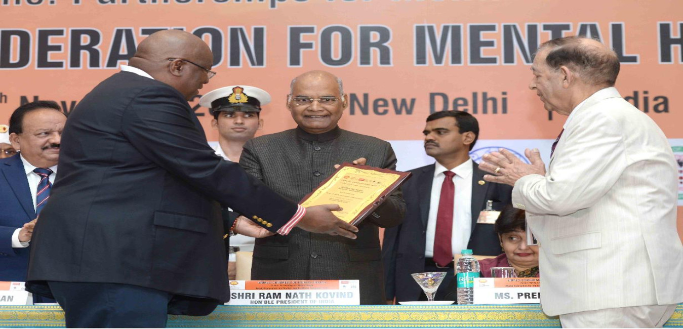 The President of India, Shri Ram Nath Kovind presenting special appreciation award, at the inauguration of the 21st World Congress of Mental Health, organised by the World Federation for Mental Health, in New Delhi on November 02, 2017.