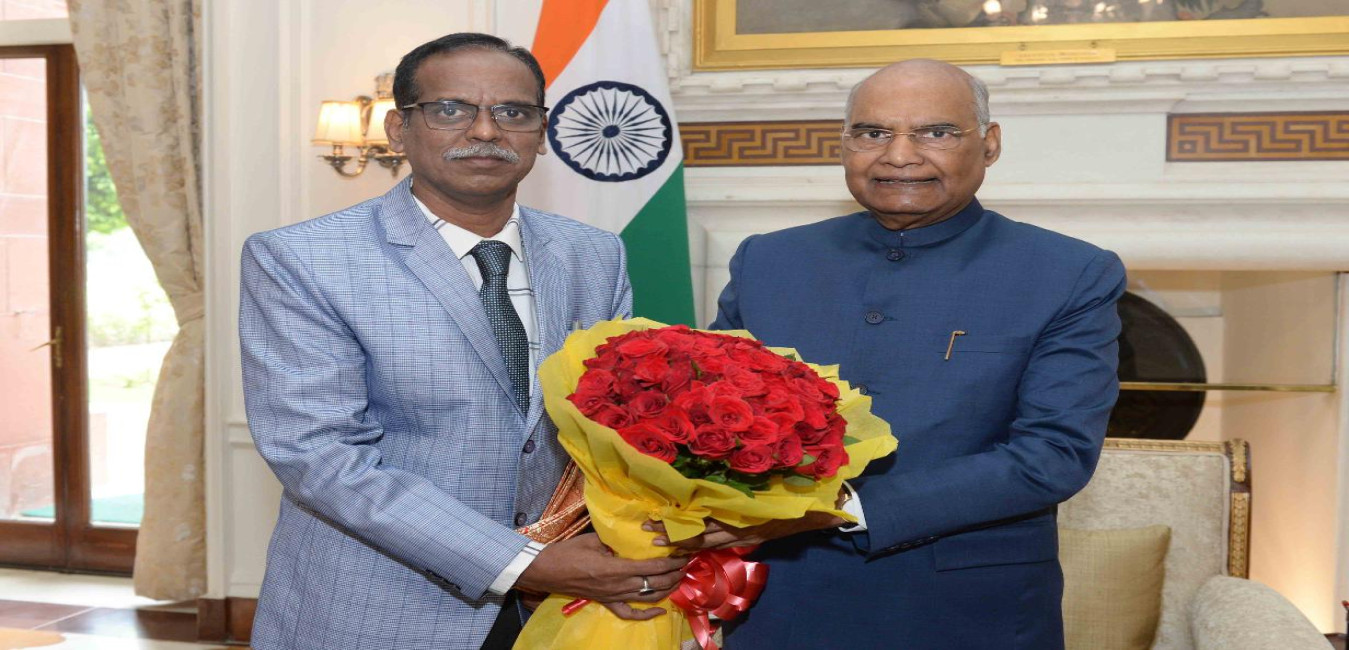 Prof. T.S.N. Sastry, Vice-Chancellor, The Tamil Nadu Dr. Ambedkar Law University, Chennai meeting with the President of India, Shri Ram Nath Kovind, at Rashtrapati Bhavan on July 08, 2019.
