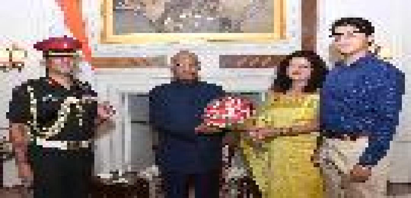 Shri Laxmikant Shukla along with his family from Noida meeting with the President of India, Shri Ram Nath Kovind, at Rashtrapati Bhavan on May 10, 2019.