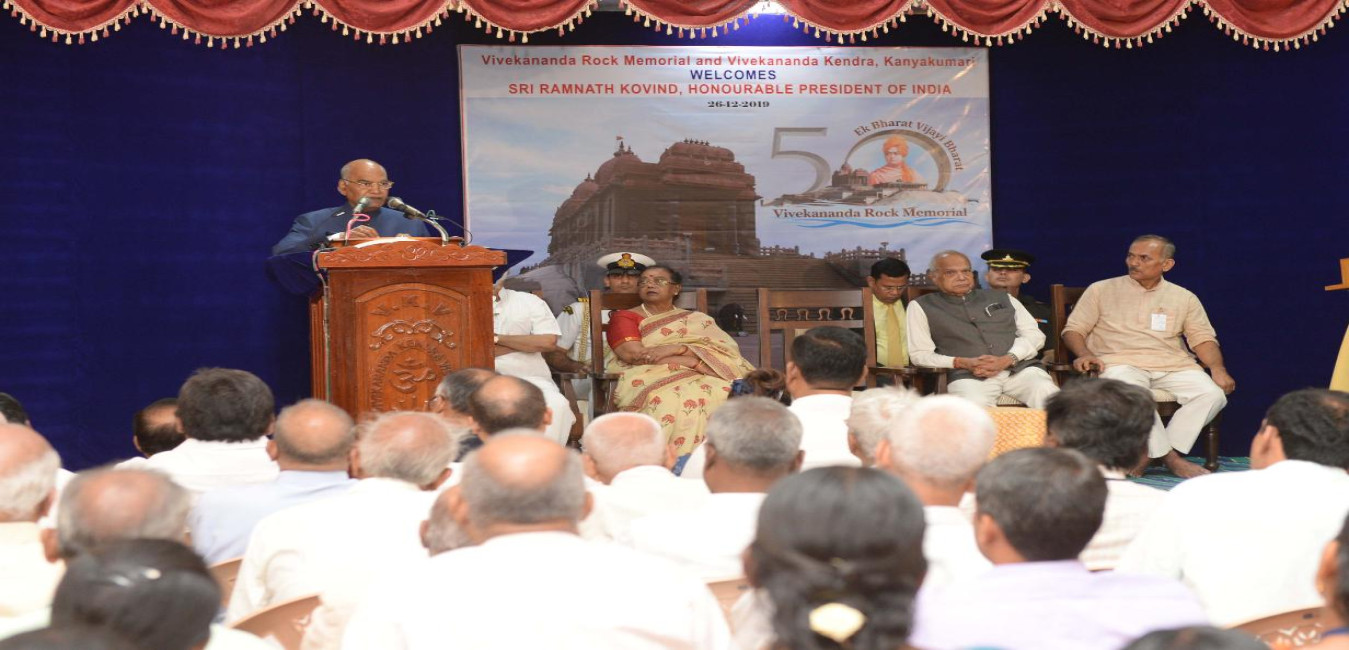 The President of India, Shri Ram Nath Kovind visits Vivekananda Kendra, in Kanyakumari, Tamil Nadu on December 26, 2019.
