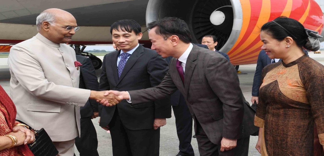 The President of India, Shri Ram Nath Kovind being received by the Chairman of the President s Office, H.E. Mr. Dao Viet Trung and other dignitaries, on his arrival, at Noi Bai International Airport, Hanoi, in Vietnam on November 19, 2018.