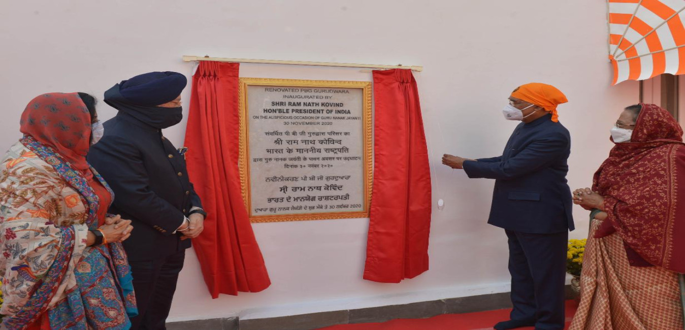 The President of India, Shri Ram Nath Kovind inaugurated the renovated PBG Regimental Gurudwara and paid homage, on the occasion of Prakash Parv of Guru Nanak Dev Ji, in the President's Estate on November 30, 2020.