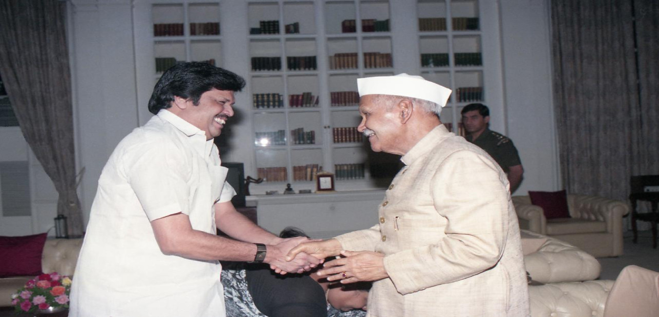 The President of India, Dr. Shankar Dayal Sharma meeting with Shri A.M. Velu MP with Family at Rashtrapati Bhavan in New Delhi on May 10, 1997