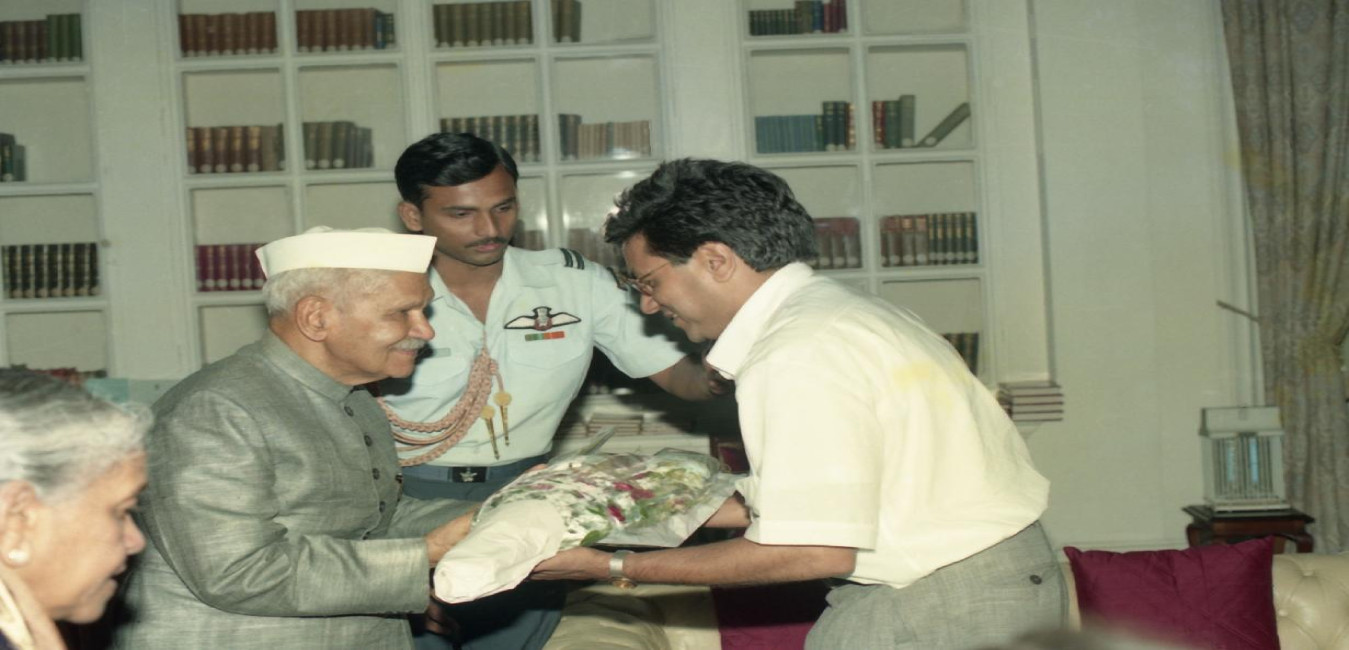 The President of India, Dr. Shankar Dayal Sharma meeting with Smt. & Shri Anil Agarwal and their Family Members at Rashtrapati Bhavan in New Delhi on July 05, 1997