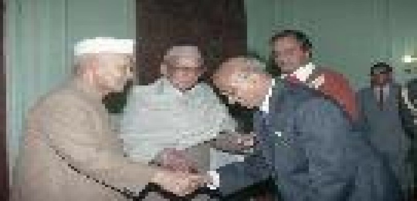 The President of India, Dr. Shankar Dayal Sharma receiving a copy of the book "Dwarika Prasad Maheshwari Rachnawali" in three volumes from Dwarika Prasad Maheshwari at Rashtrapati Bhavan in New Delhi on February 04, 1997.