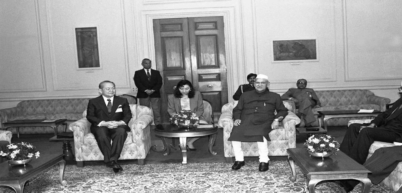 The members of Japan's Economic Mission led by Mr. Eme Yamashita, Chairman of the Indo-Japanese Business Cooperation Committee calling on the President of India, Dr. Shankar Dayal Sharma, at Rashtrapati Bhavan in New Delhi on March 08, 1994.