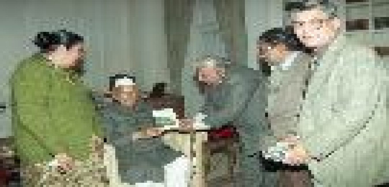 The President of India, Dr. Shankar Dayal Sharma receiving a copy of the book from Shri Ganga Prasad Vimal and Shri Chandra Prakash with others at Rashtrapati Bhavan in New Delhi on January 28, 1995.
