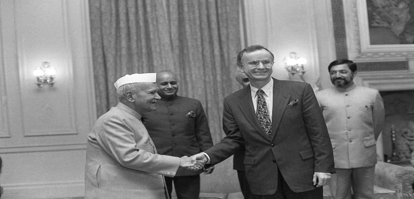The Dy. Prime Minister & Finance Minister of Poland, HE Mr. Grzegorz W Kolodko calling on the President of India, Dr. Shankar Dayal Sharma, at Rashtrapati Bhavan in New Delhi on January 11, 1997.