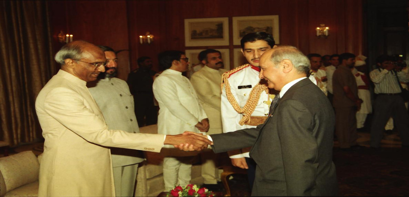 The Ambassador-Designate of Jordan to India, H.E. Mr. Hisham Muhaisen presenting his credentials to the President of India, Dr. Shankar Dayal Sharma at Rashtrapati Bhavan in New Delhi on November 10, 1995.