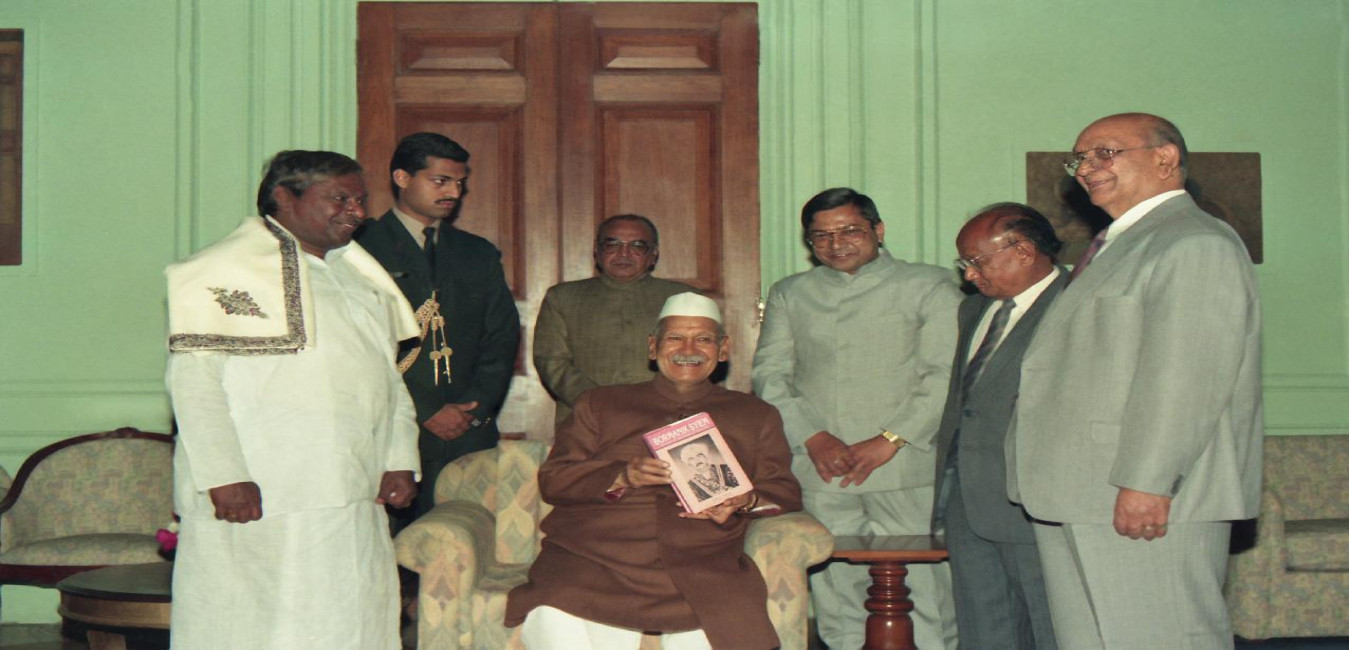 The President of India, Dr. Shankar Dayal Sharma receiving a copy of the book on Barmanik Syiem of Shri J.E. Tariang, Ex-MP at Rashtrapati Bhavan in New Delhi on March 09, 1995.