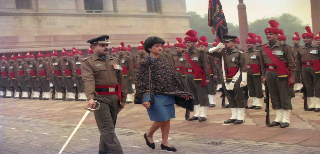 The Ambassador-Designate of Republic of Venezuela to India, H.E. Mrs. Jocelyn Henriquez de King presenting her credentials to the President of India, Dr. Shankar Dayal Sharma at Rashtrapati Bhavan in New Delhi on January 13, 1994.