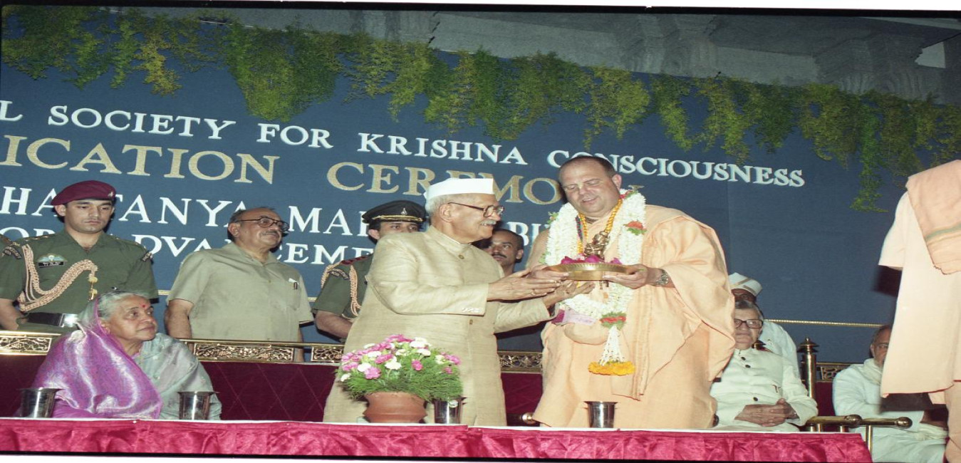 The President of India, Dr. Shankar Dayal Sharma inaugurating the Cultural and Educational Complex at the Centre for Advancement of Culture of the International Society for Krishna Consciousness, Bangalore in Karnataka on May 31, 1997.