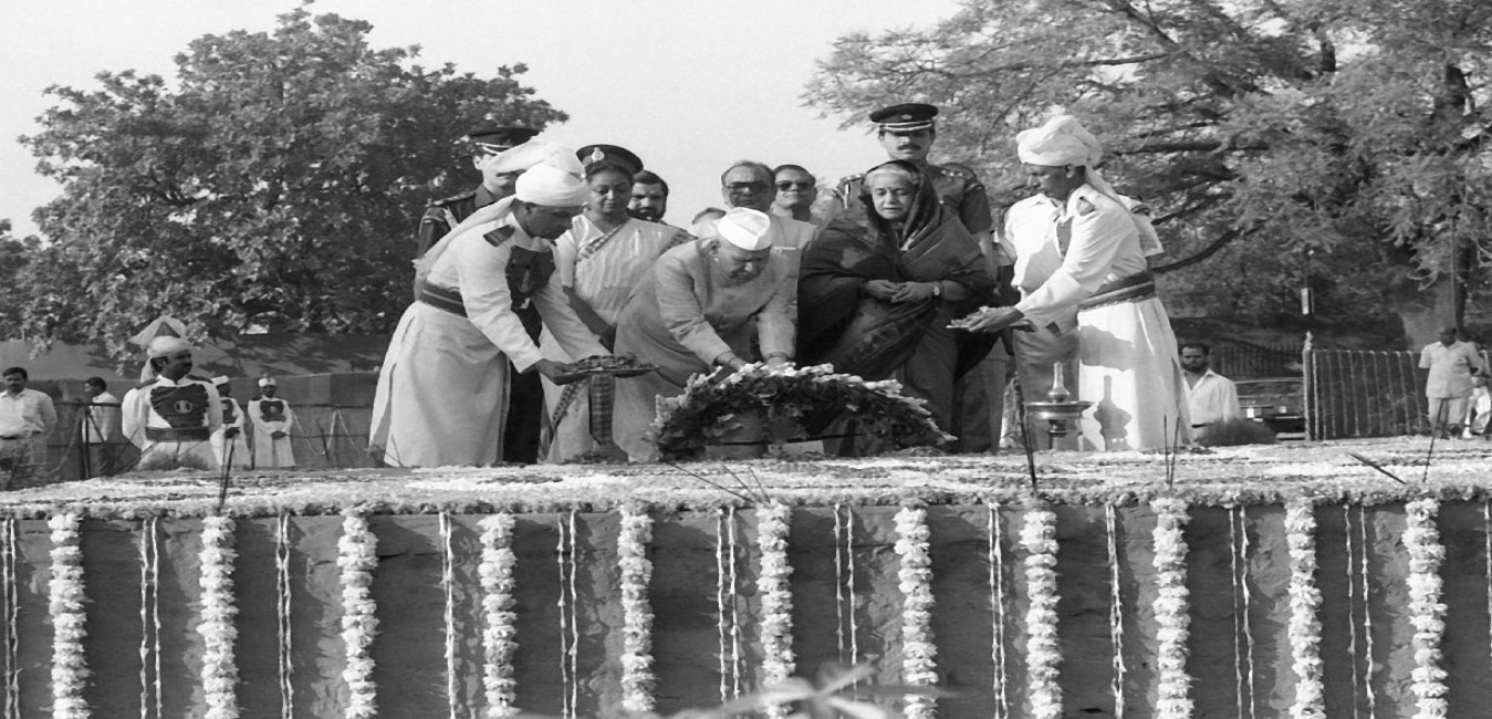 The President of India, Dr. Shankar Dayal Sharma laying wreath at the Samadhi of Shri Jagjivan Ram, on his death anniversary, at Samta Sthal in New Delhi on July 06, 1994.
