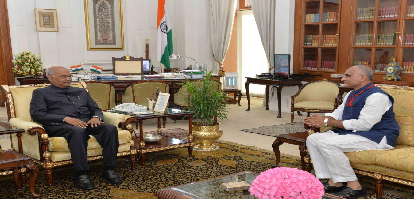 Prof. Rakesh Sinha, MP (RS) meeting with the President of India, Shri Ram Nath Kovind, at Rashtrapati Bhavan on July 31, 2018.