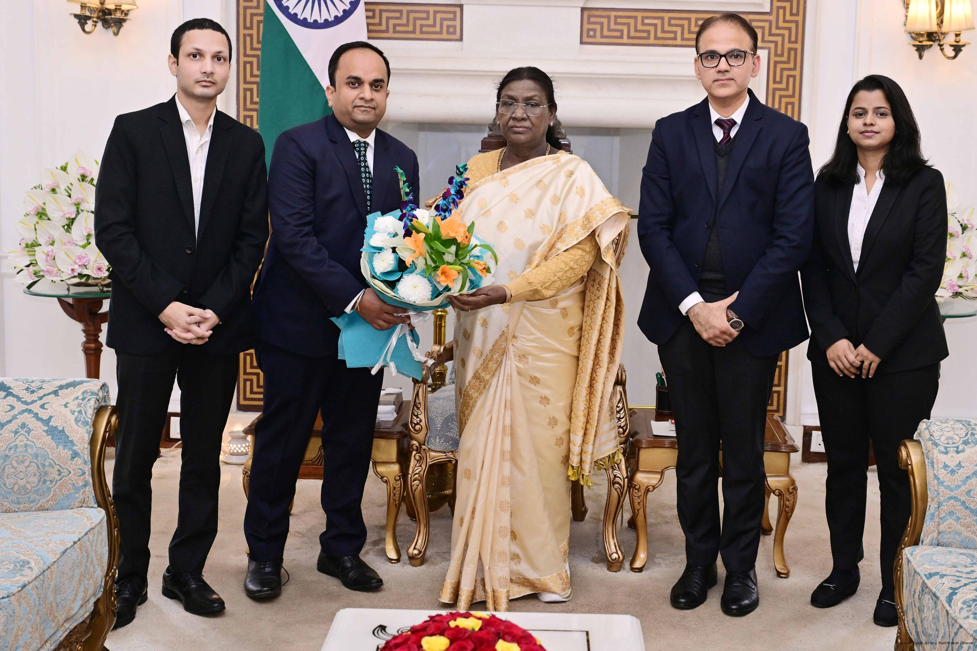 Shri Pancham Sethi, Chartered Accountant along with Shri Saurabh Gupta and others meeting with the President of India, Smt. Droupadi Murmu at Rashtrapati Bhavan on December 15, 2025.