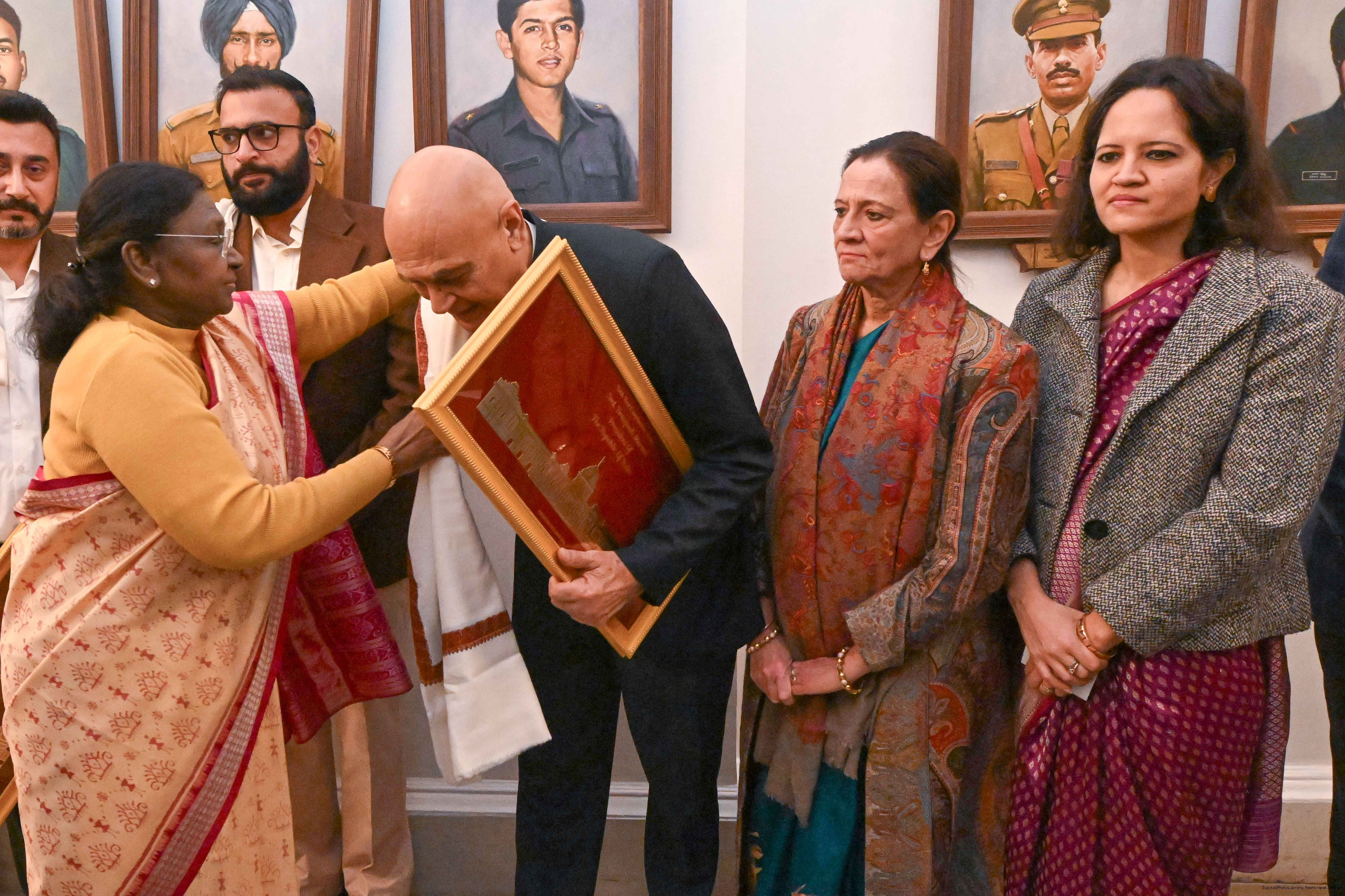 The Ambassador-designate of the Federated stats of Micronesia, Mr. John Fritz presenting his credentials to the President of India, Smt Droupadi Murmu at Rashtrapati Bhavan in New Delhi on December 15, 2025.