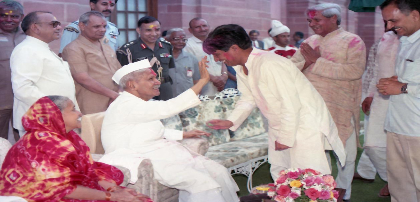 The President of India, Dr. Shankar Dayal Sharma receiving Holi Greetings from VIPs, Rashtrapati Bhavan staff and member of Public, at Rashtrapati Bhavan in New Delhi on March 27, 1994.