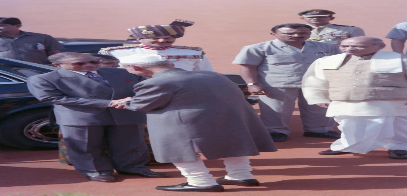 The President of India, Dr. Shankar Dayal Sharma receiving H.E. Mr. Maumoon Abdul Gayoom, President of the Republic of Maldives and Mrs. Nasreena M.A. Gayoom at their Ceremonial Reception at Rashtrapati Bhavan in New Delhi on March 21, 1994.