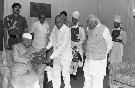 The President of India, Dr. Shankar Dayal Sharma meeting with Shri Shiv Charan Gupta, Ex-MP with Awaredees & Office bearers of Jan Jagriti Samaj at Rashtrapati Bhavan in New Delhi on July 27, 1994.