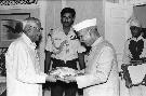 The President of India, Dr. Shankar Dayal Sharma presenting Indira Priyadarshini Vriksha Mitra Awards (1991), Indira Gandhi Paryavaran Puraskar (1992 & 1993) and National Award for Prevention of Pollution (1992) of the Ministry of Environment & Forests at Rashtrapati Bhavan in New Delhi on August 06, 1994.