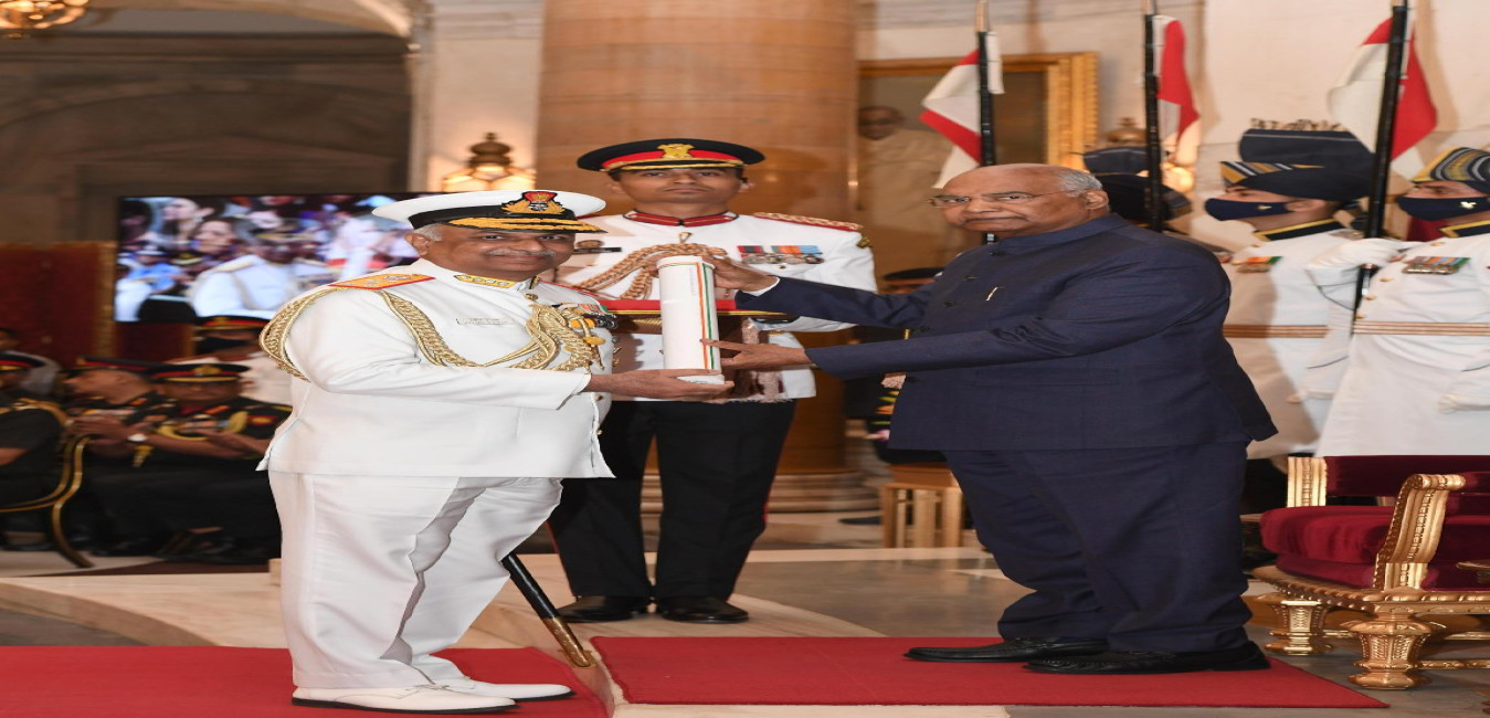 The President of India, Shri Ram Nath Kovind presents the Gallantry Awards and Distinguished Service Decorations, at the Defence Investiture Ceremony-II, at Rashtrapati Bhavan on May 31, 2022.