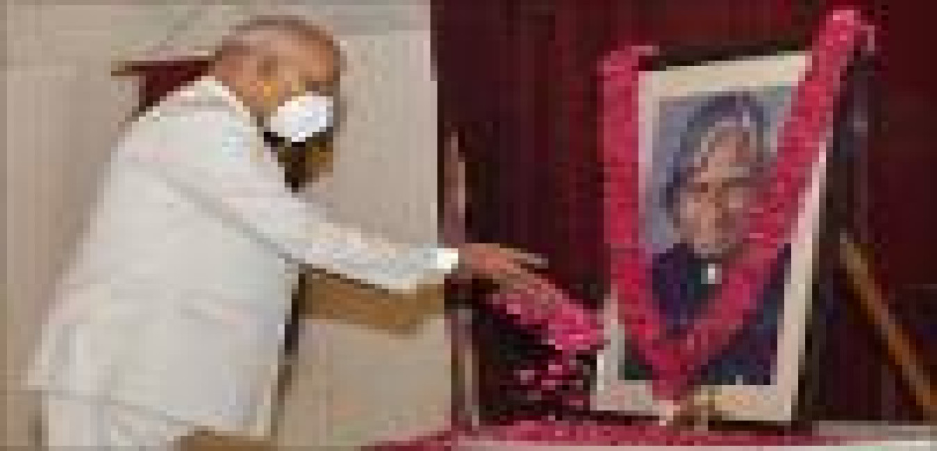 The President of India, Shri Ram Nath Kovind paying floral tributes to Dr. APJ Abdul Kalam, former President of India, on his birth anniversary, at Rashtrapati Bhavan on October 15, 2020.