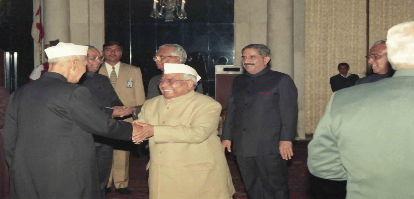 The President of India, Dr. Shankar Dayal Sharma meeting with Shri S.K. Shinde with family at Rashtrapati Bhavan in New Delhi on December 30, 1995.