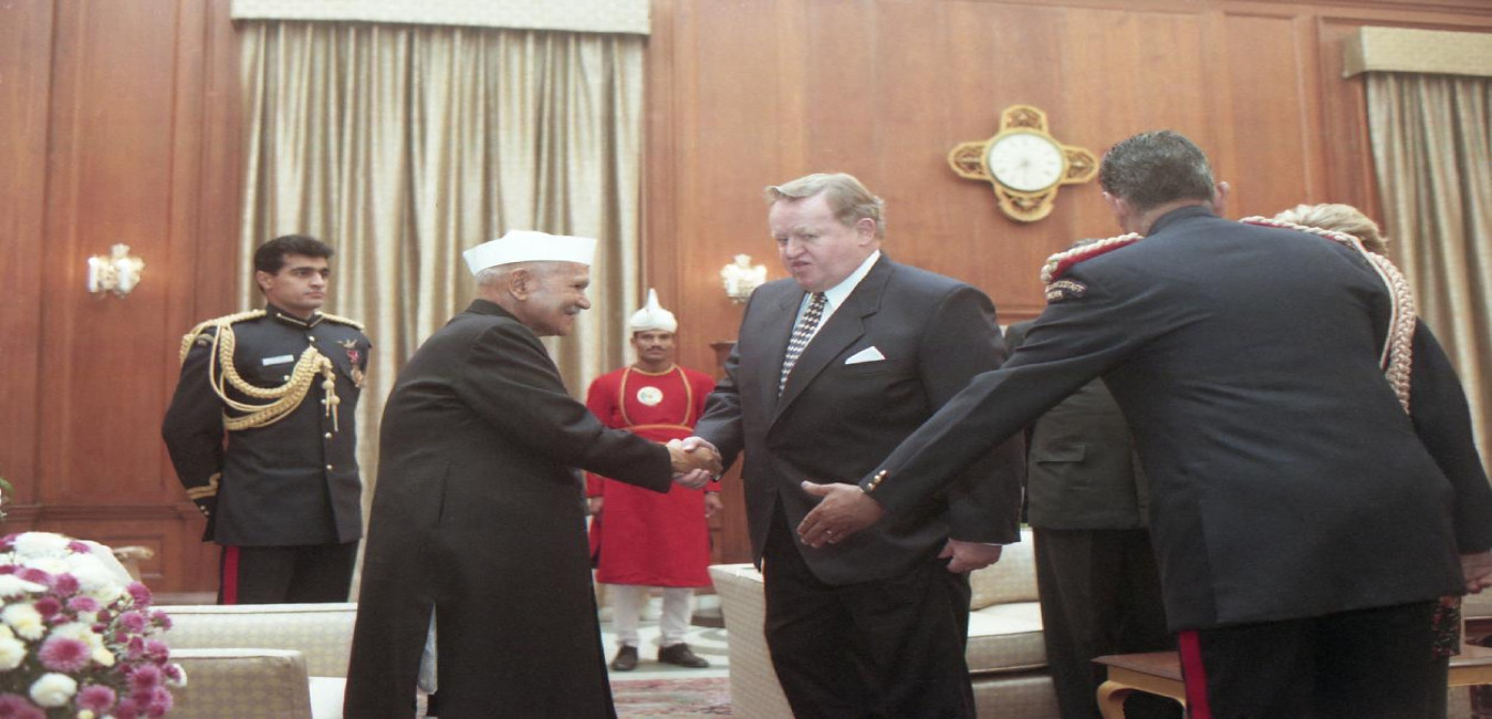 The President of India, Dr. Shankar Dayal Sharma meeting with Shri B.B. Madhukar at Rashtrapati Bhavan in New Delhi on November 13, 1996.
