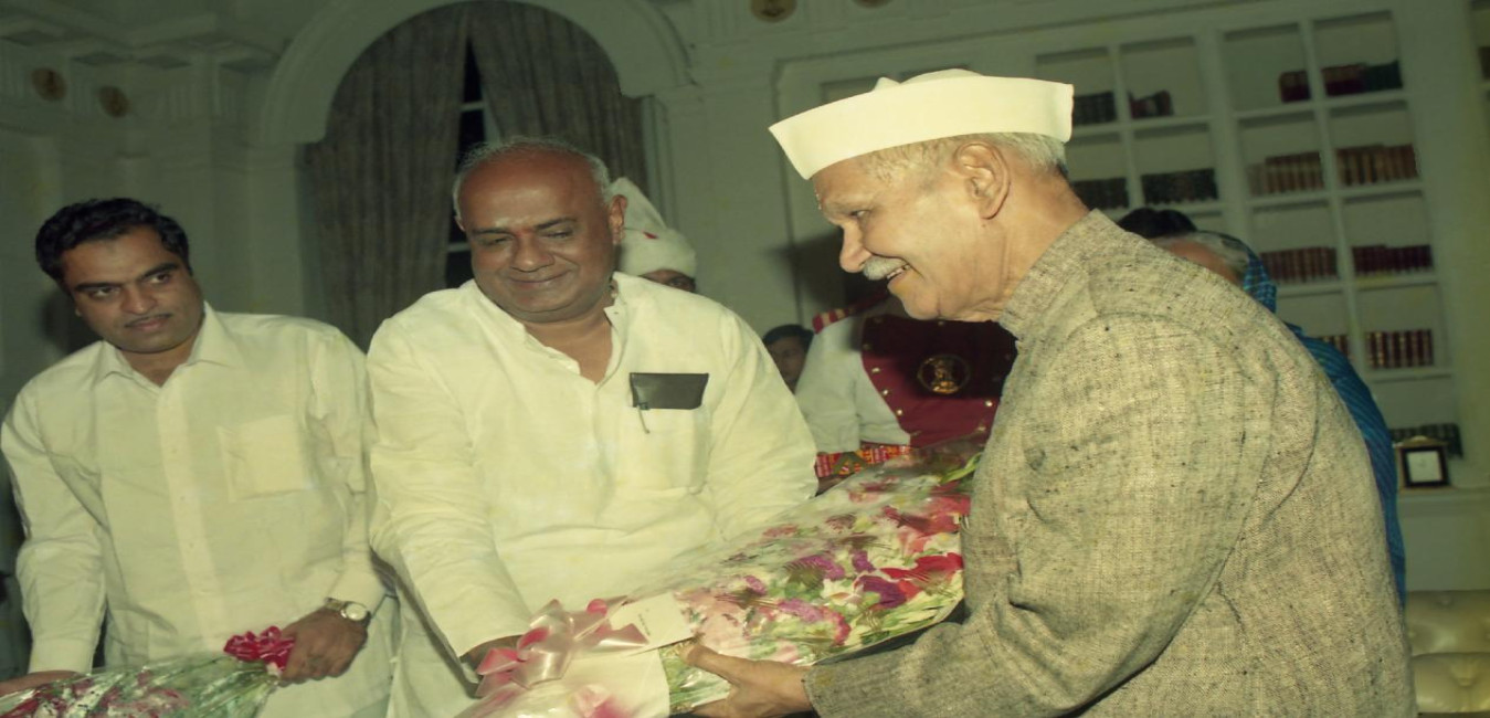 The President of India, Dr. Shankar Dayal Sharma receiving greetings from the Vice-President, Shri K.R. Narayanan, the Prime Minister, Shri H.D. Deve Gowda, the former Prime Minister, Shri P.V. Narasimha Rao, Minister of HRD, Shri S.R. Bommai and Shri Atal Bihari Vajpayee, on his birthday, at Rashtrapati Bhavan in New Delhi on August 19, 1996.