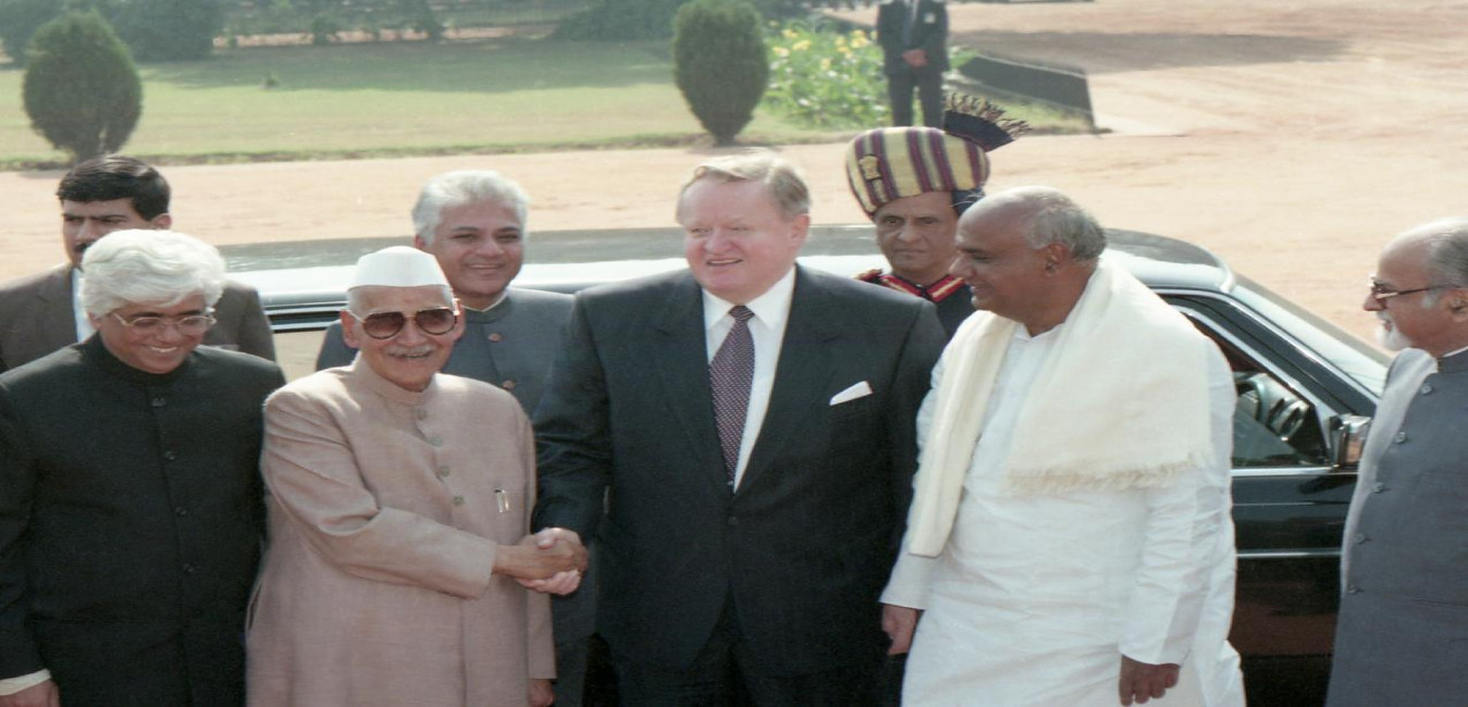 The President of India, Dr. Shankar Dayal Sharma hosting breakfast for BJP MPs (Lok Sabha & Rajya Sabha) from Madhya Pradesh & Bihar at Rashtrapati Bhavan in New Delhi on November 29, 1996.