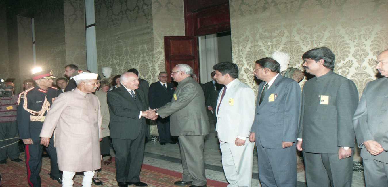 The President of India, Dr. Shankar Dayal Sharma with the Italian President, Mr. Oscar Luigi Scalfaro, at the Ceremonial Reception at Quirinale Palace, in Rome, Italy on October 14, 1996.