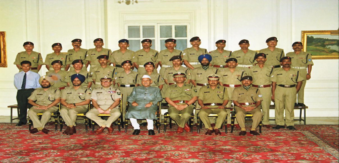 The President of India, Dr. Shankar Dayal Sharma meeting with Members of ITBP Mount Everest Expedition Team at Rashtrapati Bhavan in New Delhi on July 27, 1996.