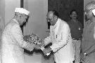The President of India, Dr. Shankar Dayal Sharma receiving a copy of the book from Mr. Chopra from UBC Publisher at Rashtrapati Bhavan in New Delhi on May 23, 1994.