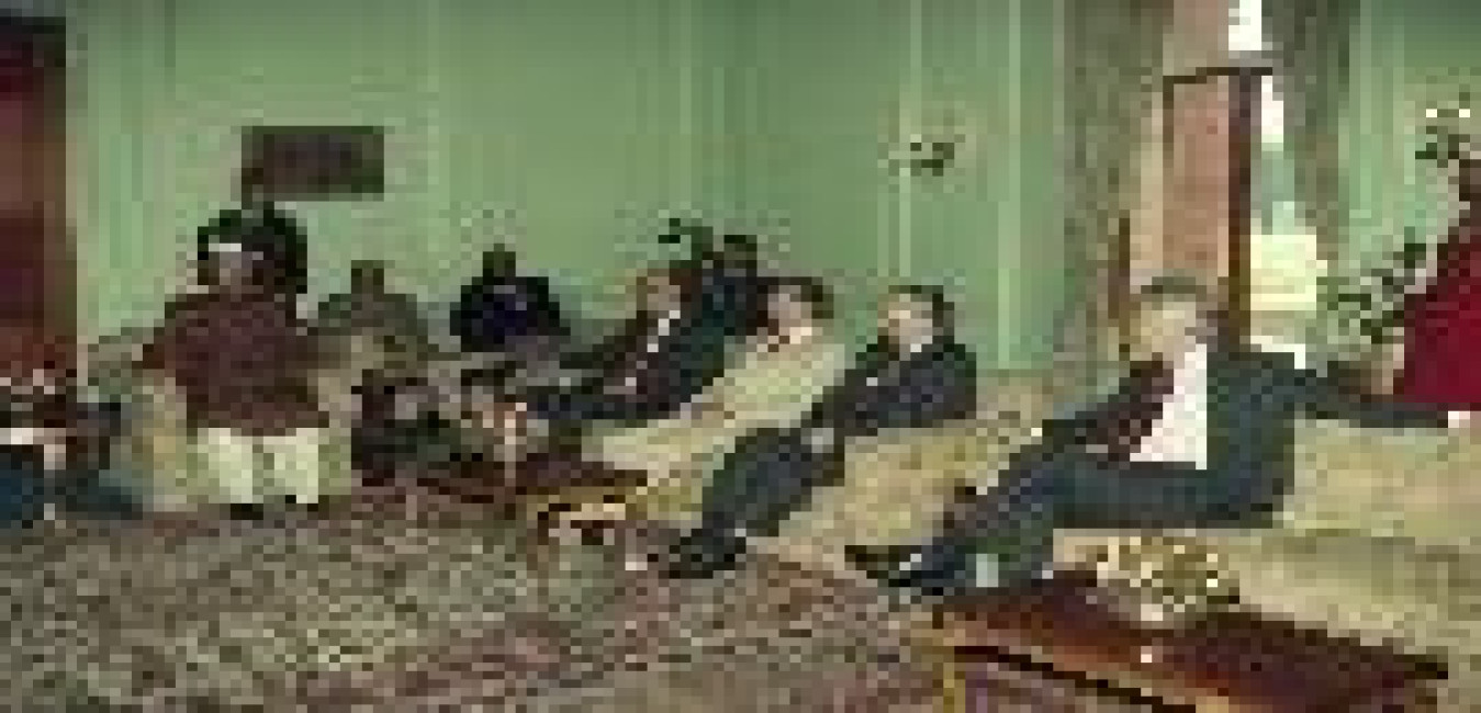 The President of India, Dr. Shankar Dayal Sharma with H.E. Mr. Emomali Sharipovich Rakhmonov, President of the Republic of Tajikistan during farewell Tete-a-Tete, at Rashtrapati Bhavan in New Delhi on December 12, 1995.
