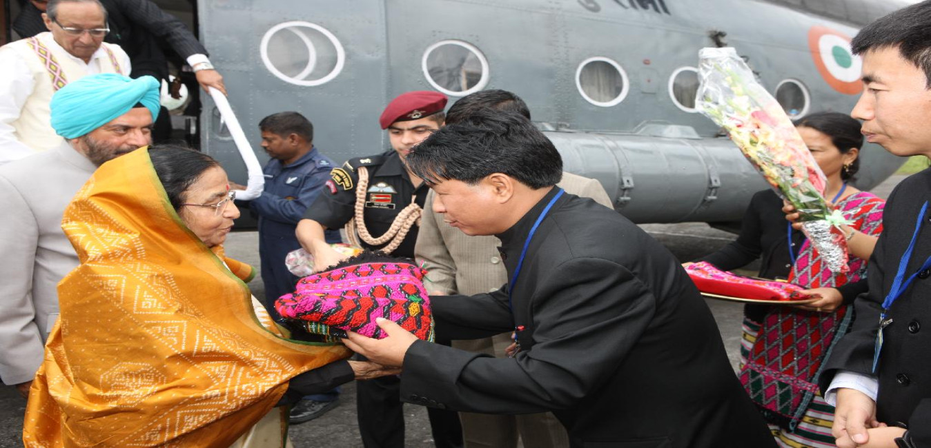 The President of India, Smt Pratibha Devisingh Patil at the Reception during her arriving at Tezu in Arunachal Pradesh on April 03, 2009