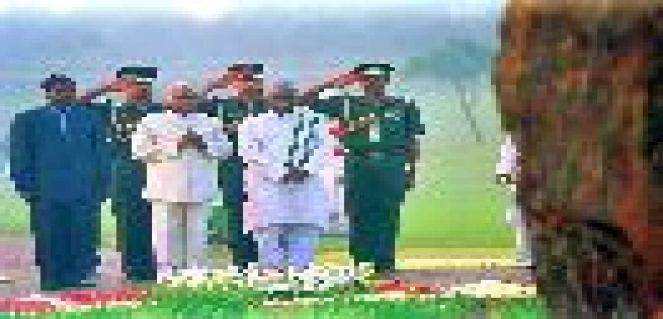 The President of India, Shri K R Narayanan paying homage at the Samadhi of the Father of the Nation, Mahatma Gandhi at Rajghat in New Delhi on Jan 30, 1999