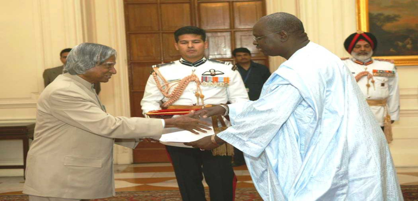 The Ambassador-Designate of Republic of Senegal to India, HE Mr Amadou Bocoum presenting his credentials to the President of India, Dr A P J Abdul Kalam at the Yellow Drawing Room of at Rashtrapati Bhavan in New Delhi on May 07, 2004