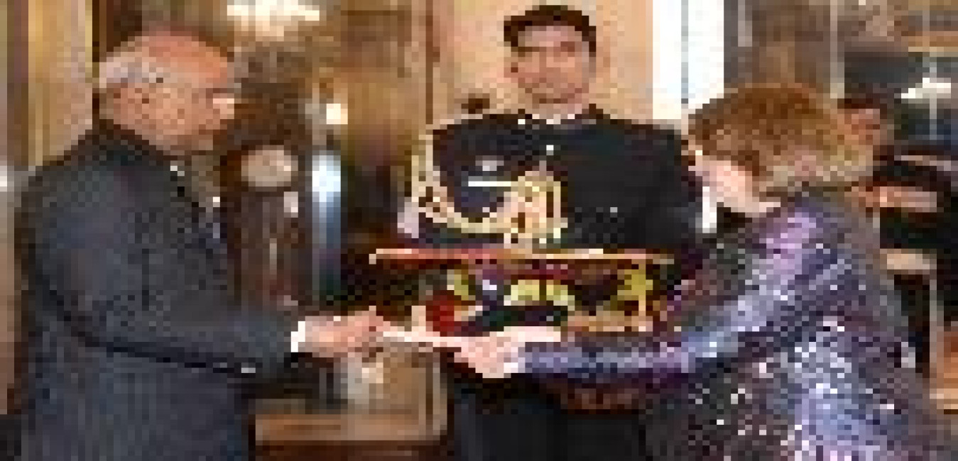 The Ambassador of the Republic of Costa Rica, Her Excellency Ms. Mariela Cruz Alvarez presenting her credentials to the President of India, Shri Pranab Mukherjee, at Rashtrapati Bhavan on May 17, 2017.