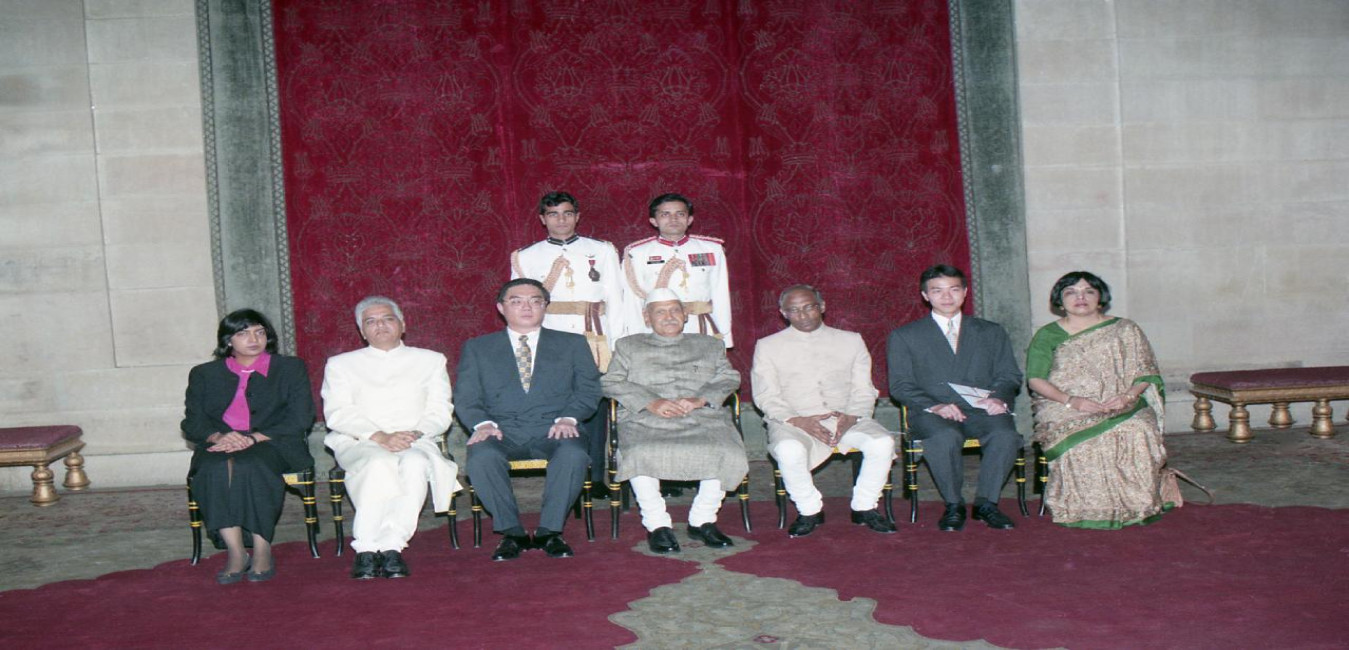 The Ambassador-Designate of the Democratic People's Republic of Korea to India, HE Mr. Pak Myong Gu presenting his credentials to the President of India, Dr. Shankar Dayal Sharma at Rashtrapati Bhavan in New Delhi on March 17, 1997.
